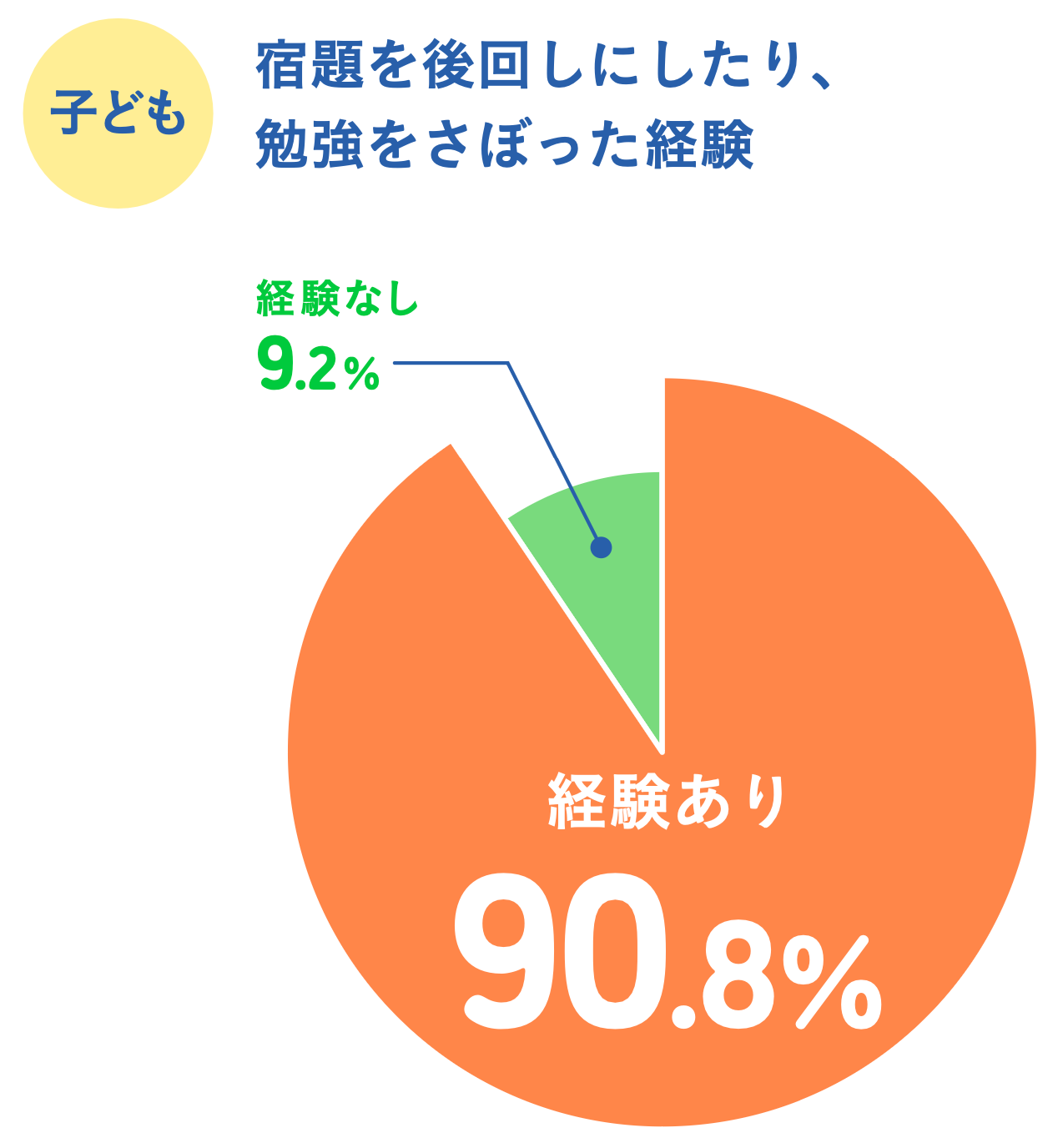 子どもの9割が「宿題を後回しにしたり、勉強をサボったりした」経験あり。