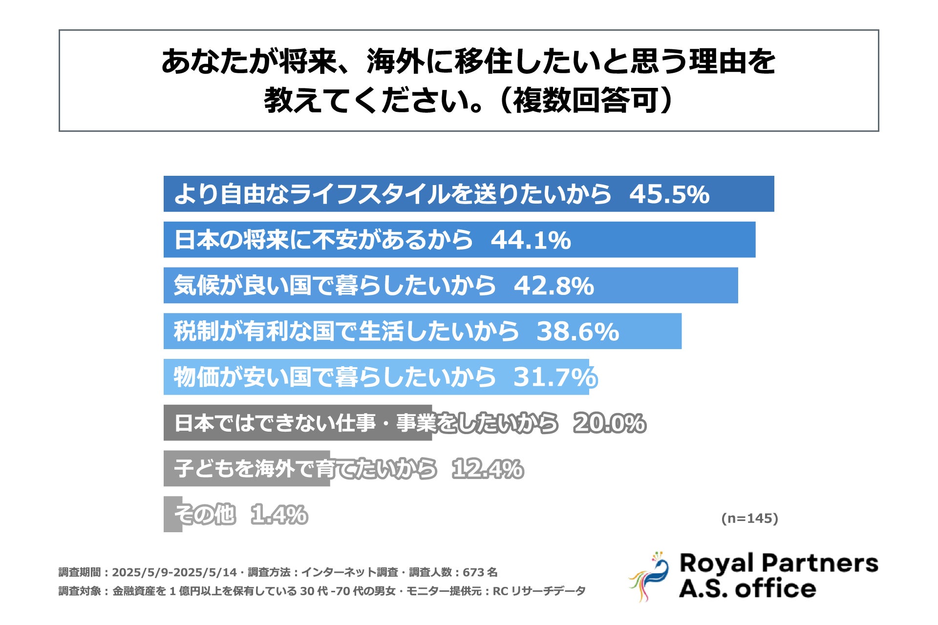 日本に住む富裕層の約2割が「将来的に海外移住を検討している」と回答!ロイヤルパートナーズ行政書士事務所が日本の富裕層の「海外移住」に関する意識調査を実施!