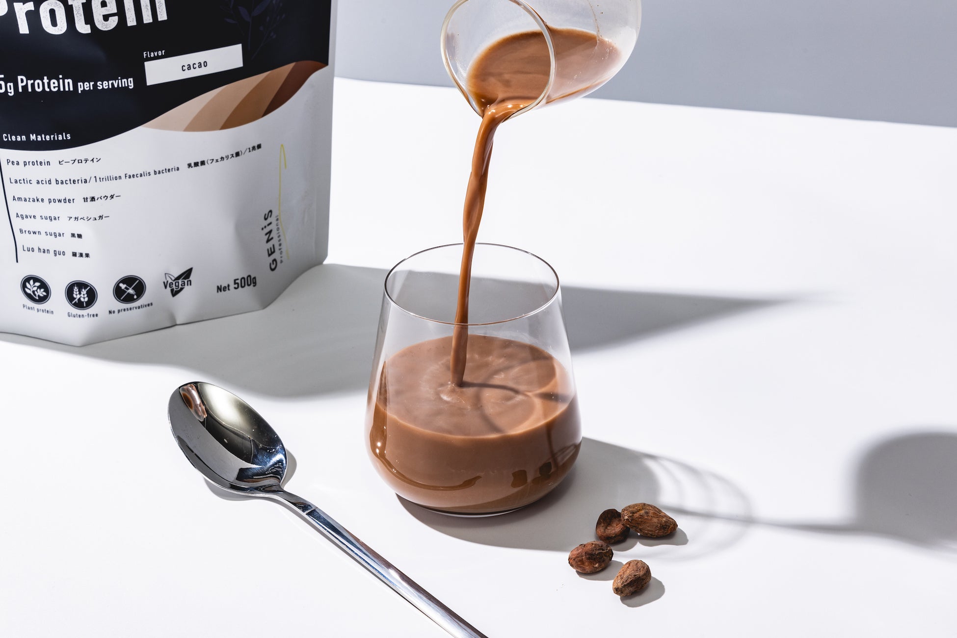 【人工甘味料不使用のプロテインから新フレーバー登場】宮崎麗果・黒木啓司開発監修のGENiSより、乳酸菌を1兆個含有したClean Protein CACAOが登場。
