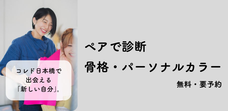 コレド日本橋で、「ペアで診断!骨格・パーソナルカラー」を提供