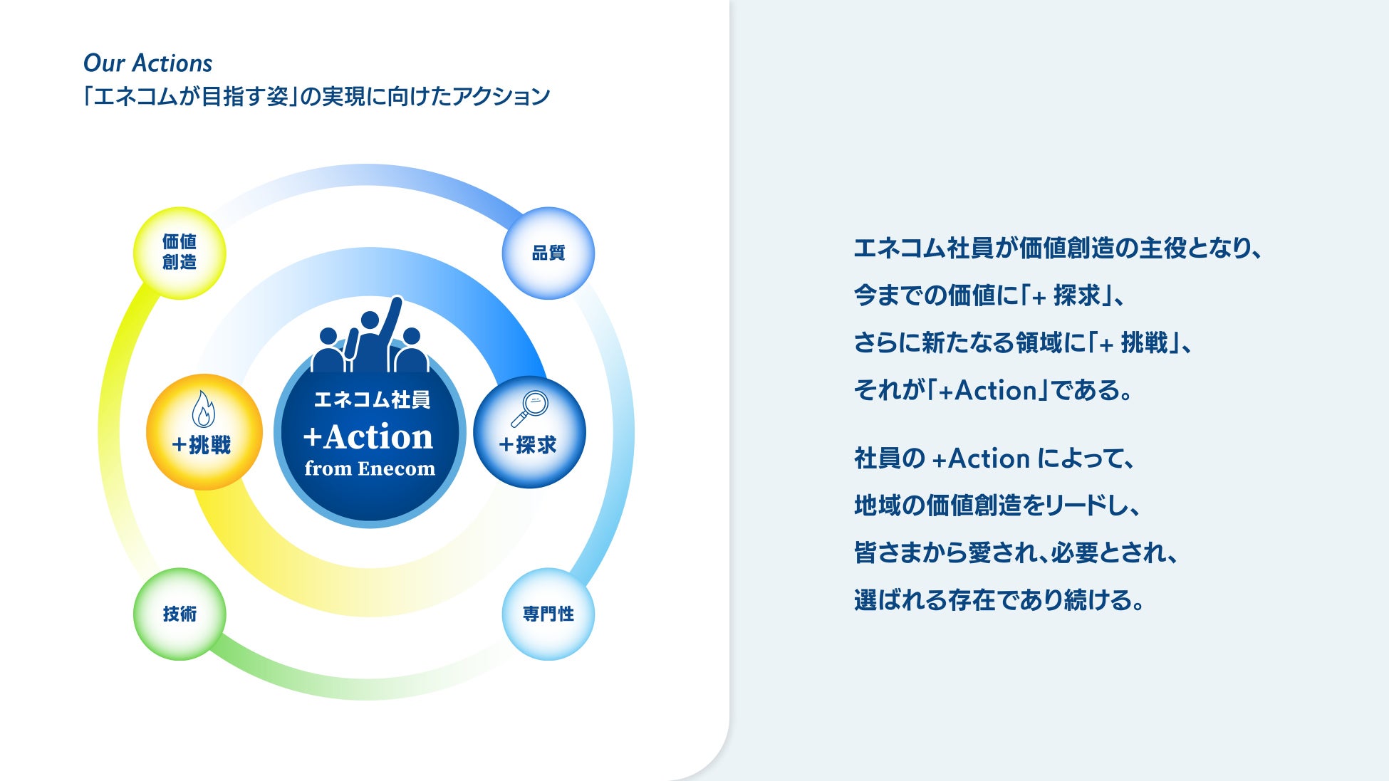 新しい経営ビジョン「from Enecom」には、“未来に向かって、エネコムから新たなことをはじめる”という想いを込めました。