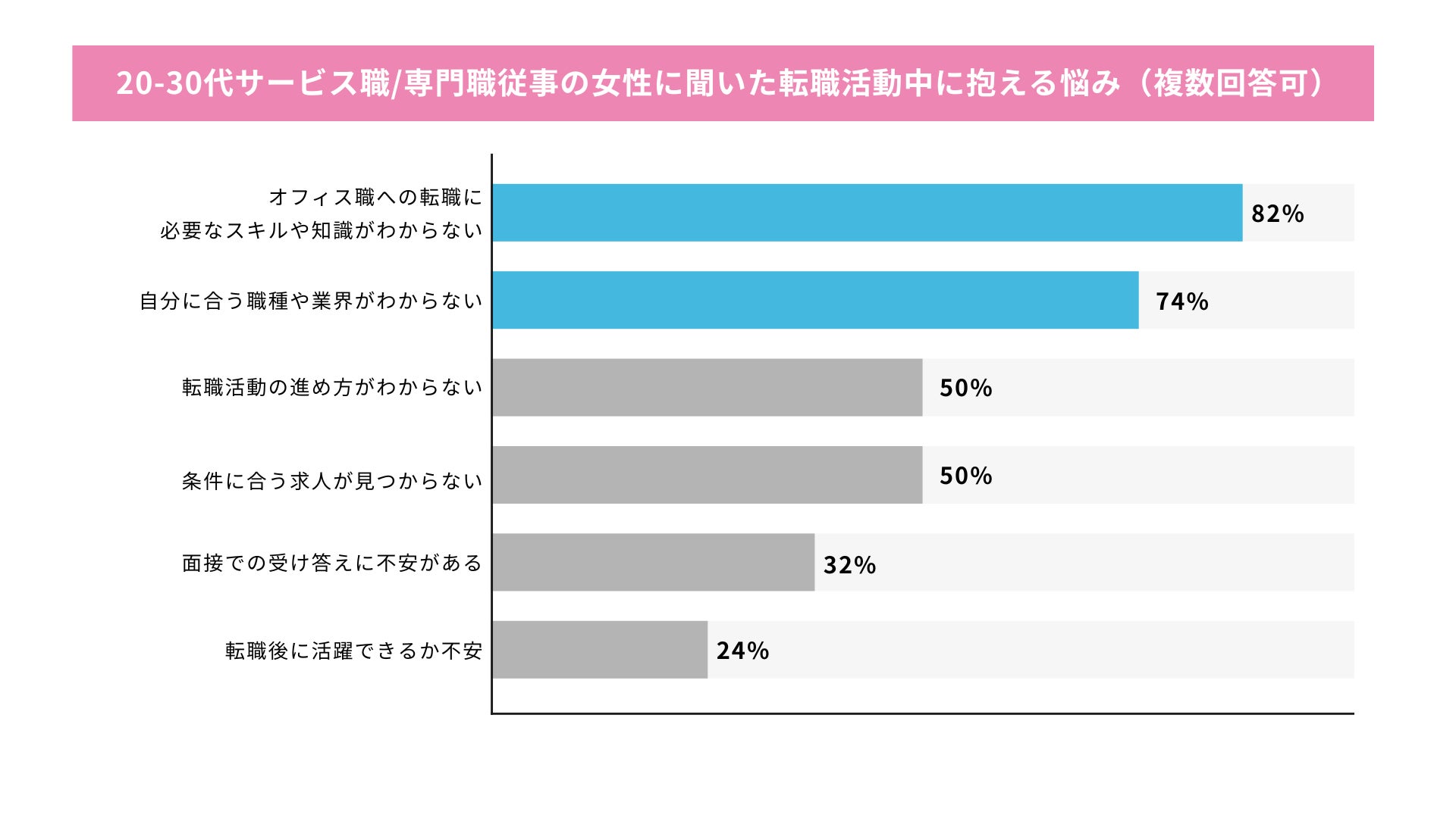 また、職場外研修(リスキリング学習)の受講率は男性43.2%に対し女性28.8%と、学びの機会にも男女格差が存在しています。(日本総研, 2023)NEWPASS CAREER利用者の多くは「PCスキルに自信がない」「自分に合ったキャリア設計と必要な学習がわからない」という声が多く、キャリアアップしたい女性が“学びと転職の間の断絶”に直面しているのが現状です。