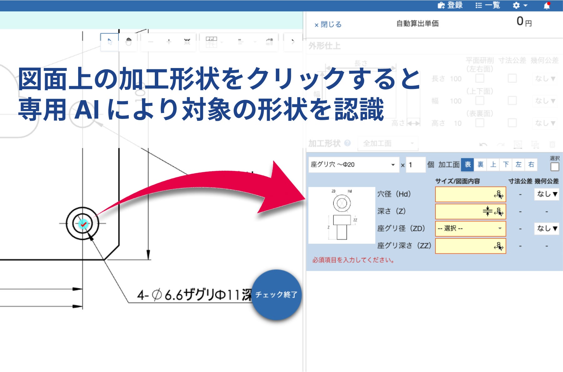 図面加工品の仕様確認や見積り業務におけるコミュニケーションコストの削減、長年の経験が必須であった見積り業務に要するスキルの低減など、これまでの業務をさらに迅速で正確な業務へとカイゼンするクラウドサービスを展開します。