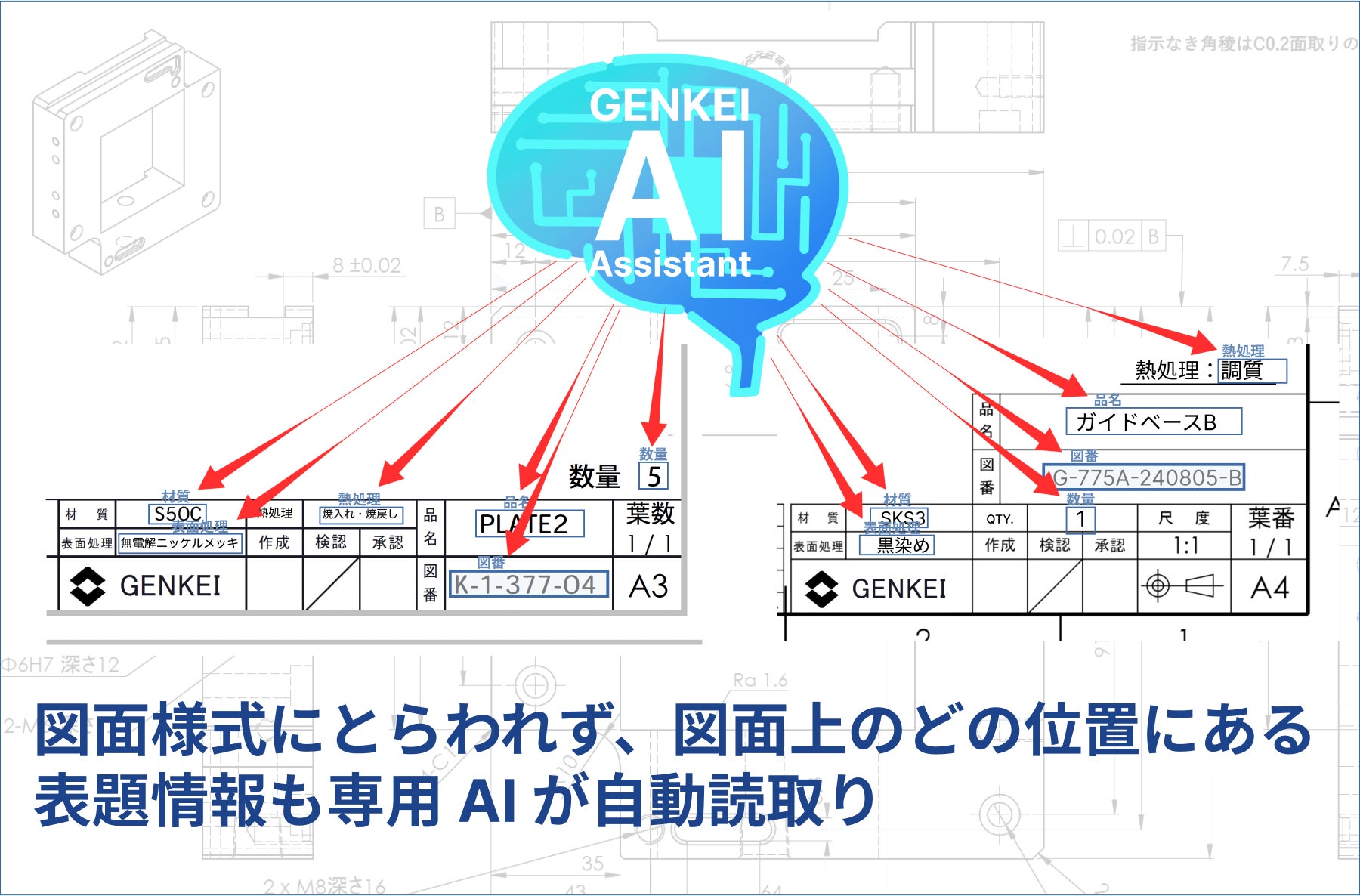 加工原価見積り「GENKEI VAULT」、調達業務の合理化「GENKEI LINK」にAI表題情報読取りをはじめとするGENKEI AI Assistantを搭載、AIによる充実のサポート体制へ。
