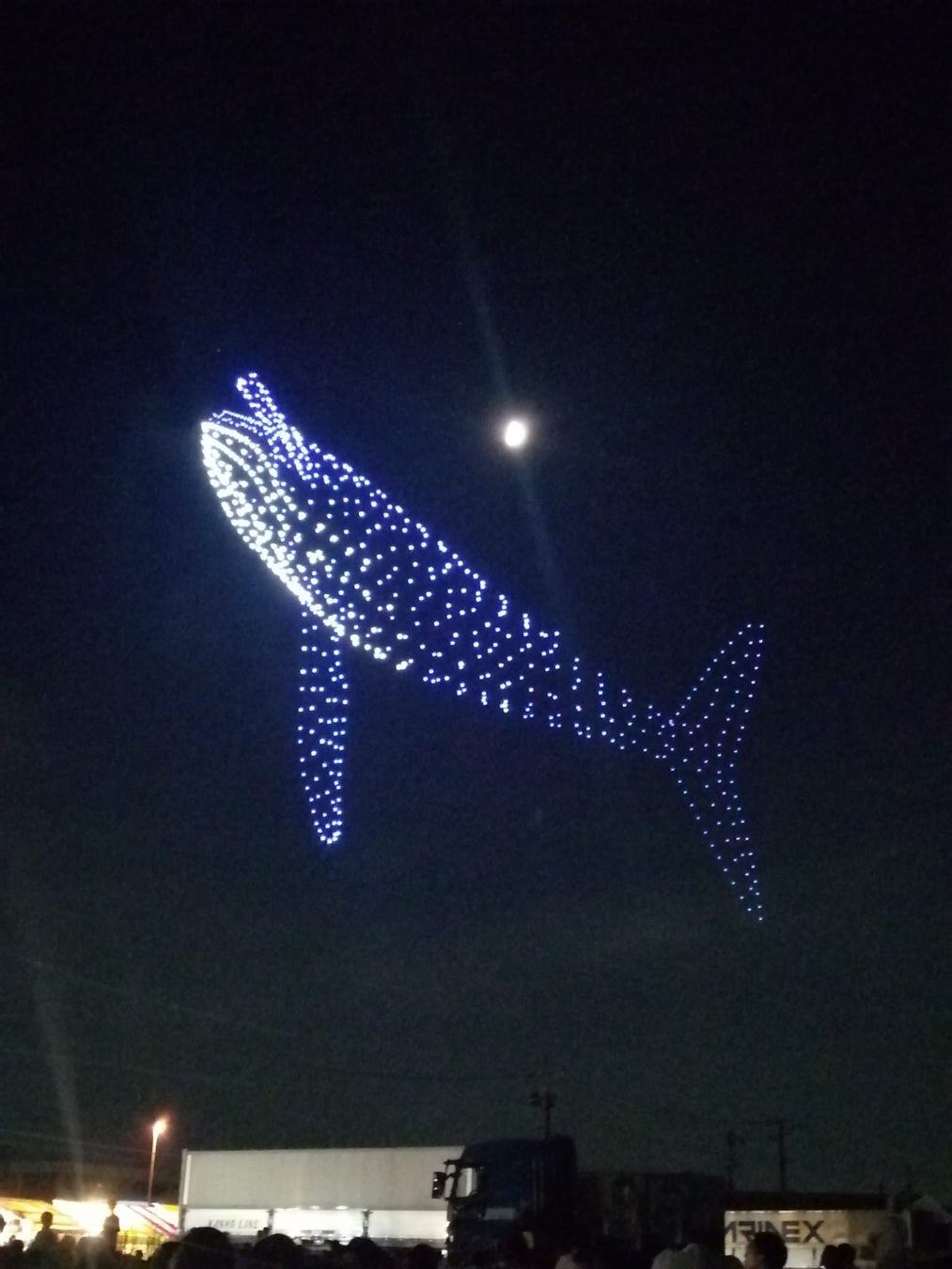 昨年の500機から大幅に機体数を増やして、本年は800機のドローンで下関・北九州のの夜空をドローンで鮮やかに彩りました。