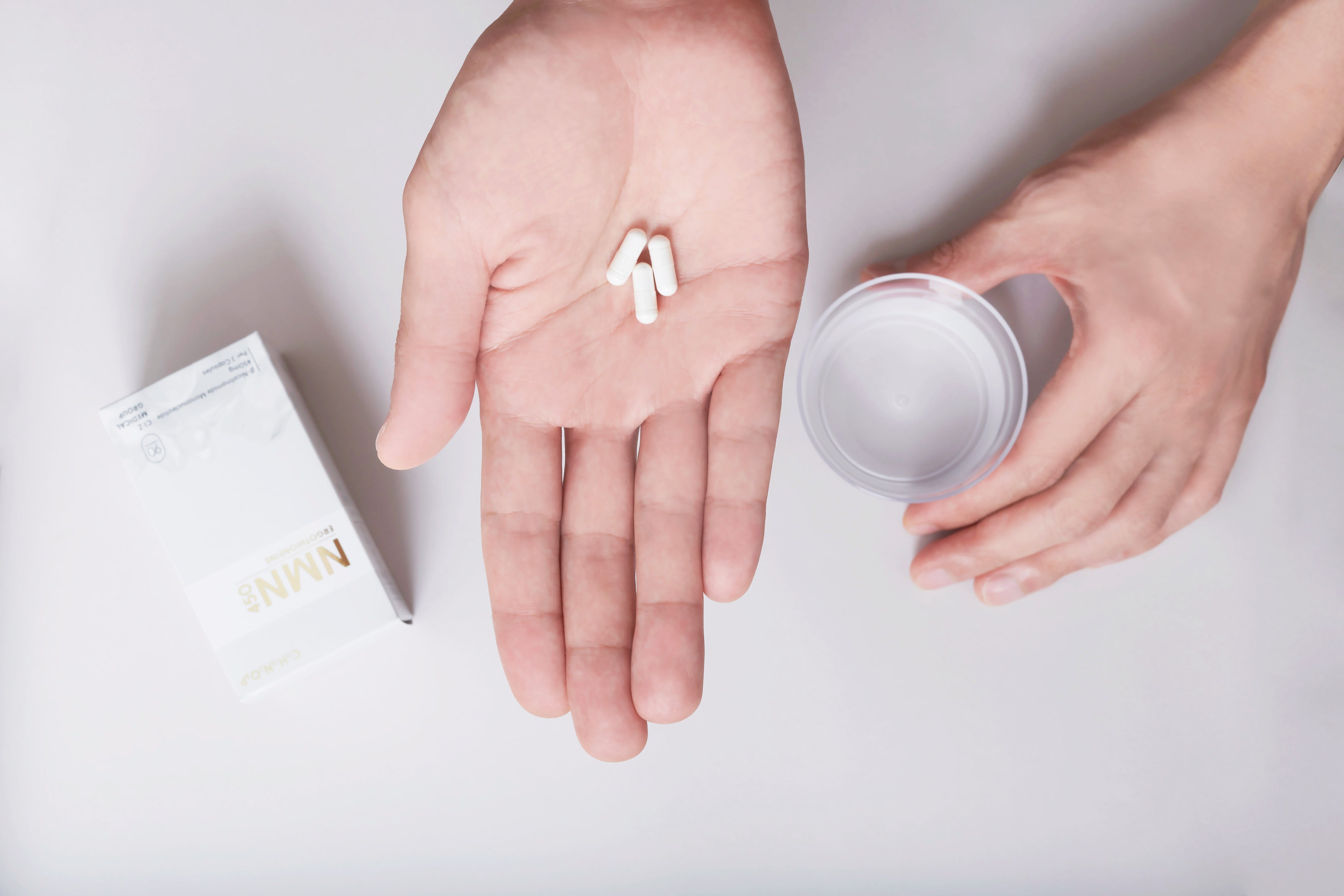 NMNは、「β-ニコチンアミドモノヌクレオチド」の略称で、もともと体内に存在する成分です。 NMNを摂取すると、体内で速やかにNAD+(ニコチンアミドアデニンジヌクレオチド)に変換されます。NAD+はエネルギーを作り出す際に欠かせない補酵素で、NAD+なしでは生命を維持できないと言われています。NAD+そのものは分子量が大きく吸収されにくいため、代わりにNMNを摂取する方法が効率的にNAD+を増加させると言われています。