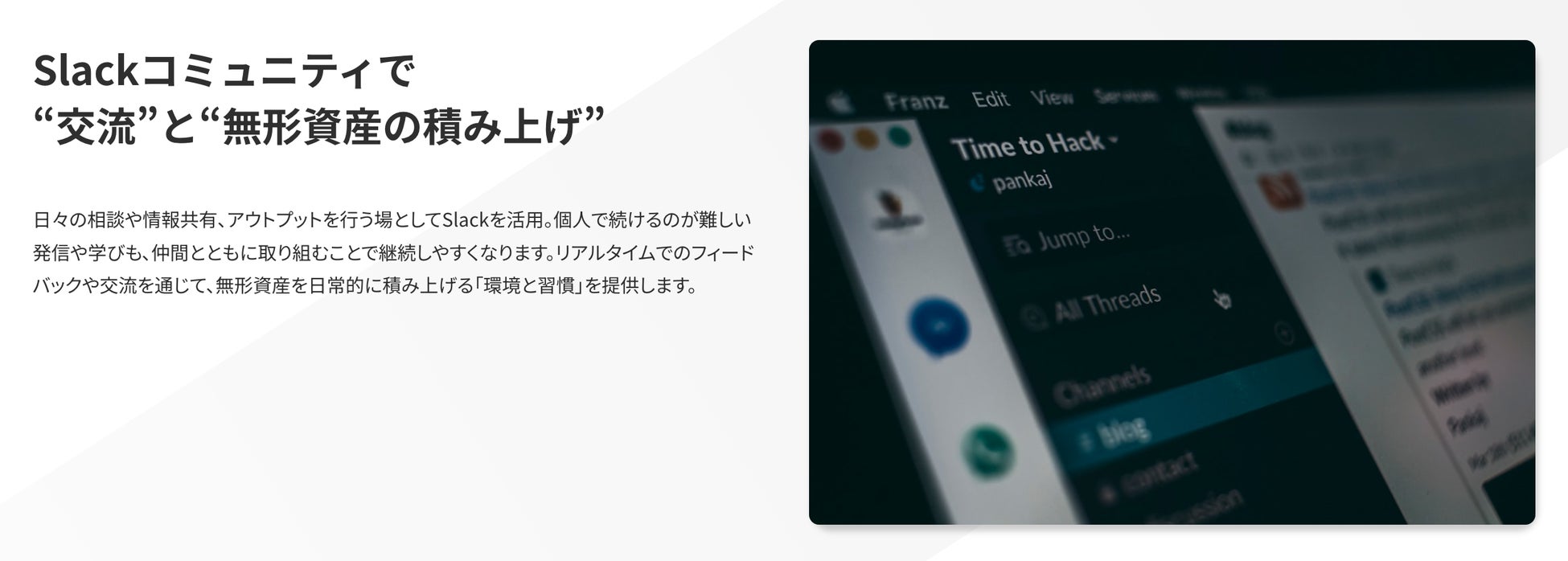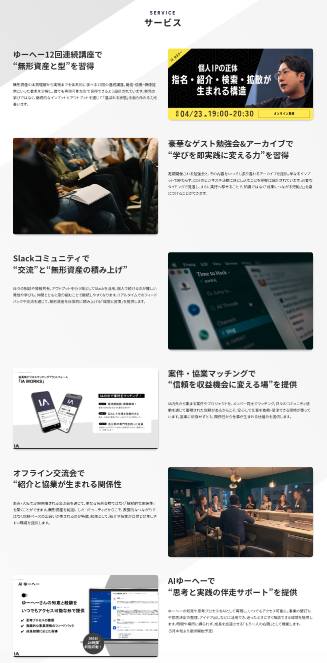 IAは、交流自体を目的とした場ではなく、無形資産を積み上げ、それを仕事に変えていくための行動が前提となるコミュニティです。