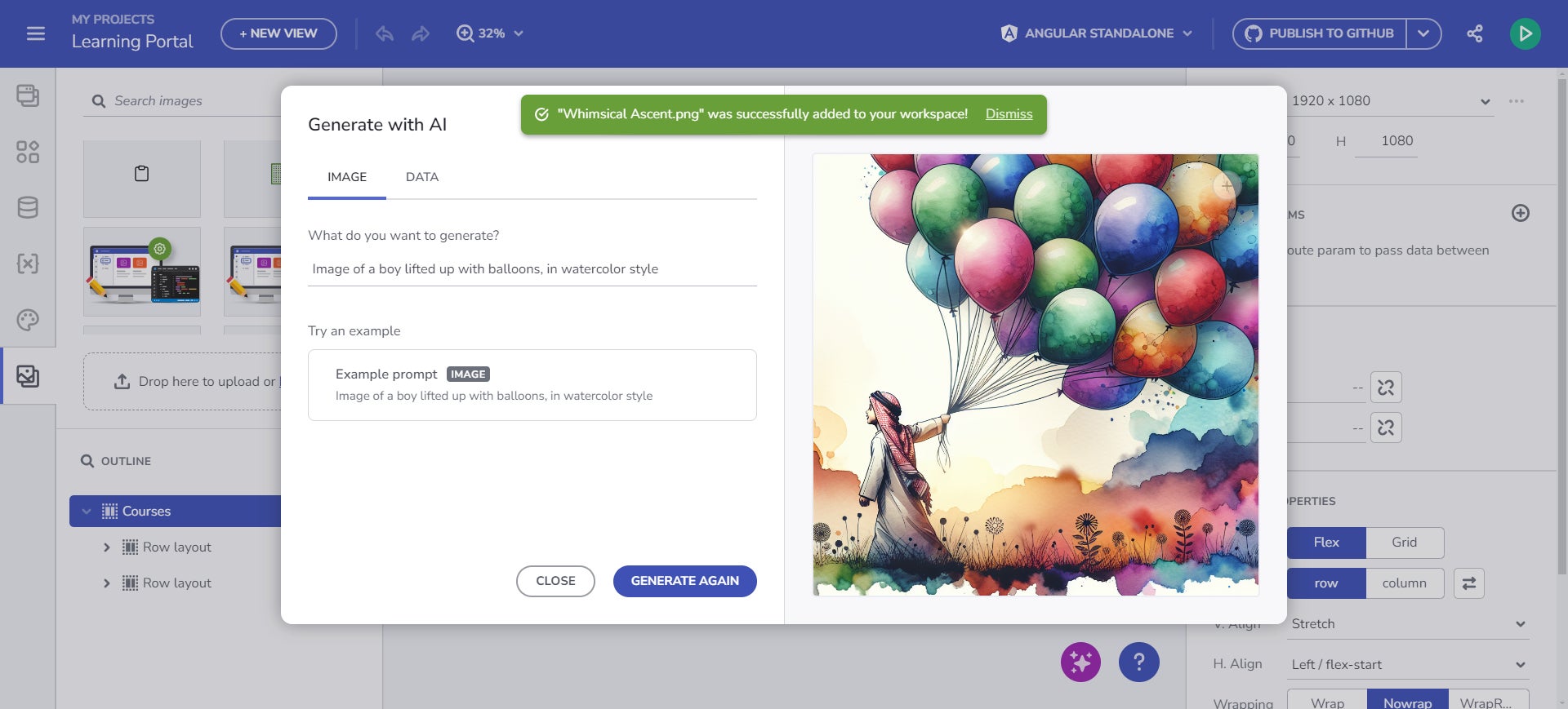 画像はあらゆるアプリケーションにおいて重要なコンポーネントですが、高品質のビジュアルの調達や作成は時間がかかります。「App Builder AI」は、自然言語のプロンプトから画像を生成し、具体的で高品質な画像を短時間で用意することができます。