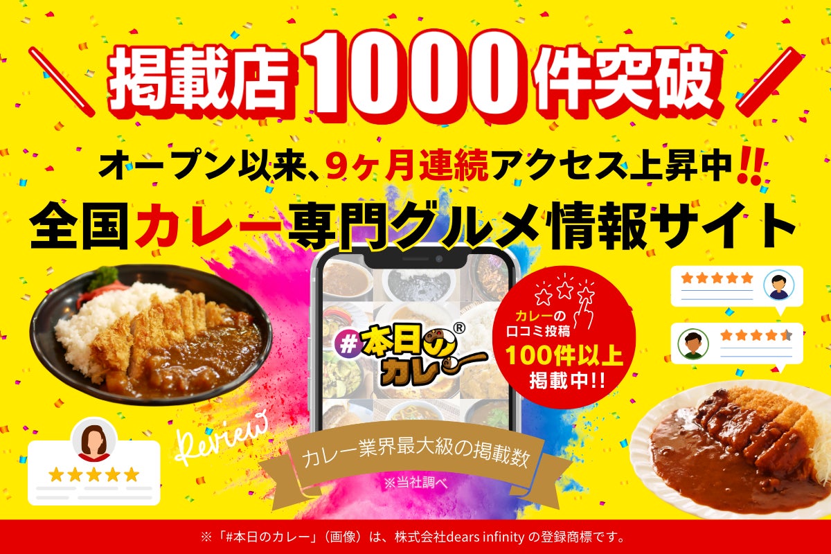 ウェブ広告や飲食店向け集客支援サービスを手掛ける 株式会社dears infinity(ディアズ・インフィニティ 所在地:大阪府枚方市)が運営する、全国カレー専門グルメ情報サイト「#本日のカレー」掲載店1,000件を突破しました。