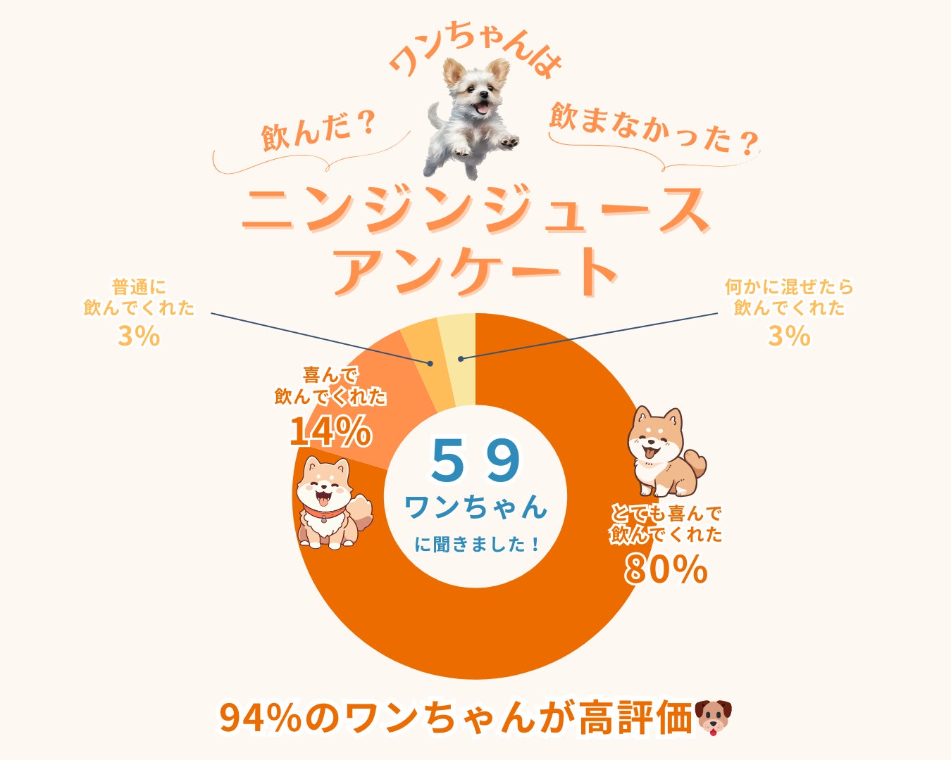 お陰様をもちまして、いろんな方から喜びのお声を頂戴しております。最近では、ニンジンジュースを楽しみにするあまり、冷蔵庫をカリカリと引っ掻く愛犬の姿が報告されるほど。「うちの子もすっかりお気に入りです!」という声が続々と寄せられ、愛犬たちの熱烈な支持を実感しています。