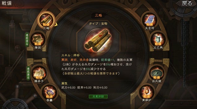 戦備とはスキルを持つ宝物のことで、専用武将スキルを持つ8種類の戦備を獲得できる!