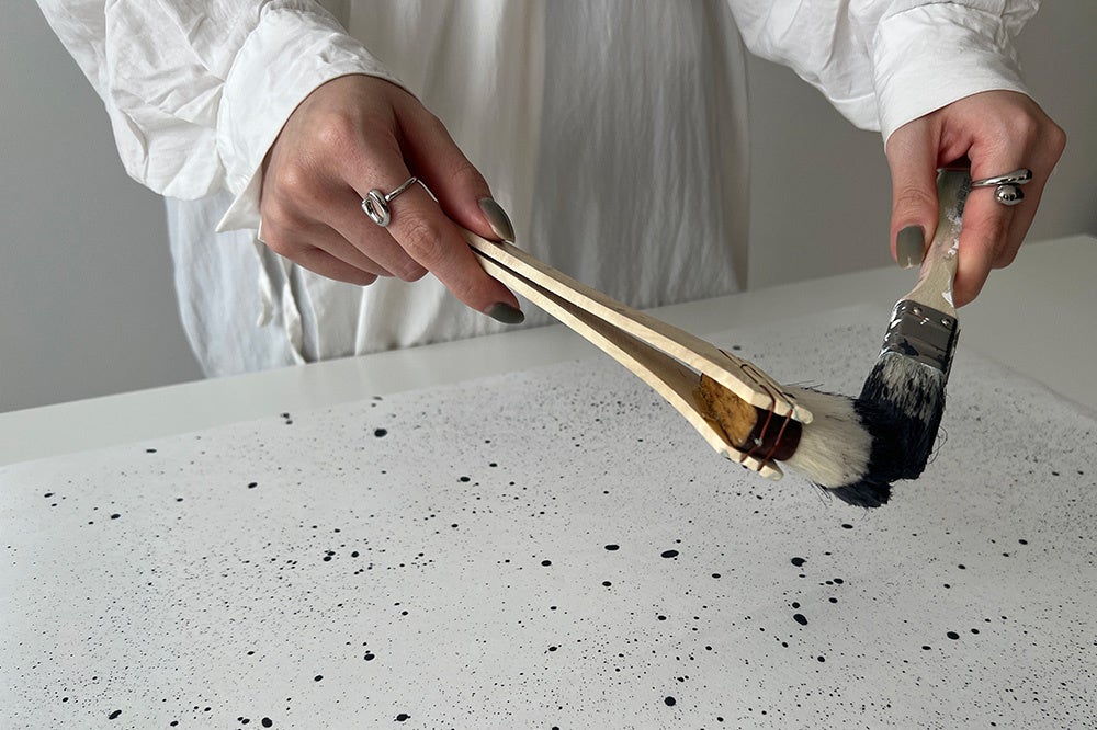 元々韓国インテリアが好きなのですが、コーディネートに使われているマグカップやトレイなどの小物類でよく見かけるインクが飛び散ったようなデザインを、壁紙でも表現してみたいと思ったのが制作のきっかけになりました。