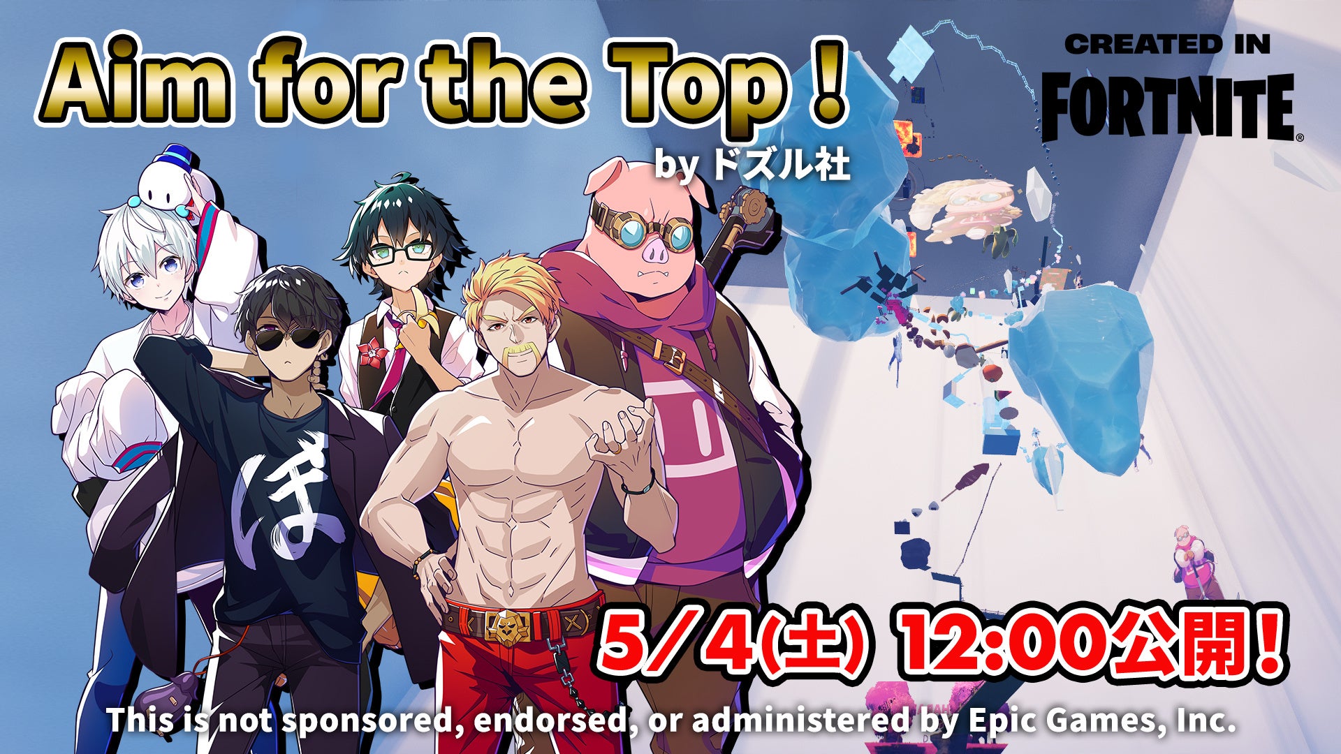 株式会社EbuAction(所在地:東京都渋谷区 代表取締役 野田 慶多)は、株式会社ドズル(所在地:東京都品川区 代表取締役社長 ドズル)の協力のもと、人気オンラインゲーム「Fortnite」内で、ゲーム実況グループ「ドズル社」のメンバーが登場するアスレチックゲーム「Aim for the Top ! by ドズル社」を制作しました。