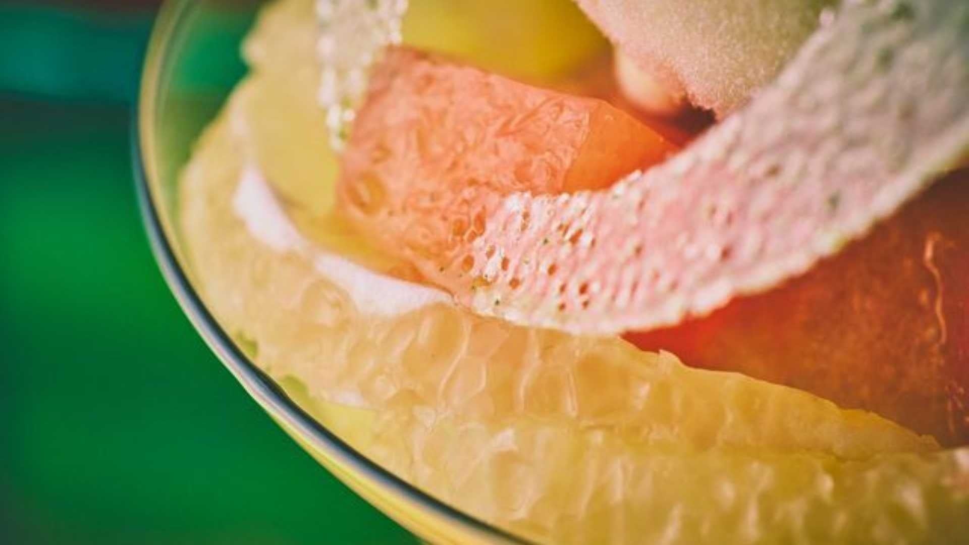 18世紀にフランスで誕生した伝統菓子「サヴァラン」をConstellation.風にアレンジしました。焼きたてのブリオッシュにトロピカルフルーツのリキュールやライムを使用したオリジナルカクテルを染み込ませ、グレープフルーツの苦味と生姜の辛味をアクセントにした夏の夜に食べたい大人のパフェです。