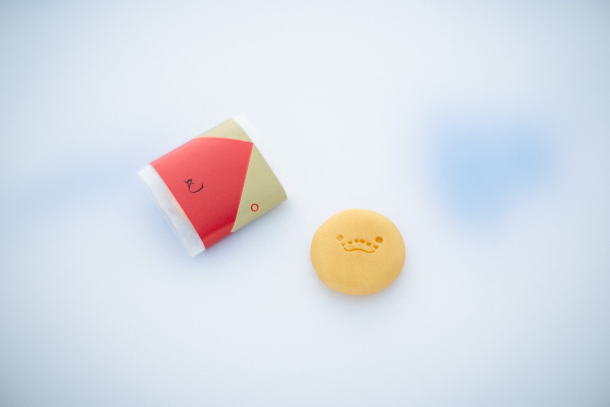 しっとりとして、ほろほろと口どけが良いことが特徴の桃山生地で白餡を包みこみ、「巳」の印を押しました。まあるい形が場を和ませ、食べやすいサイズで御茶請けにもぴったりです。