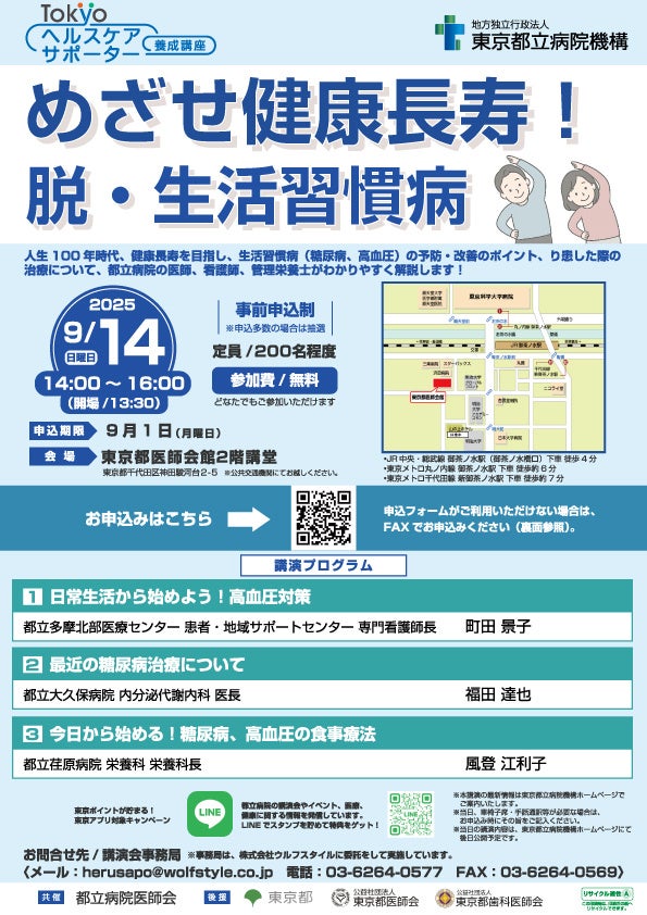 Tokyoヘルスケアサポーター養成講座講演会「めざせ健康長寿!脱・生活習慣病」を開催します!