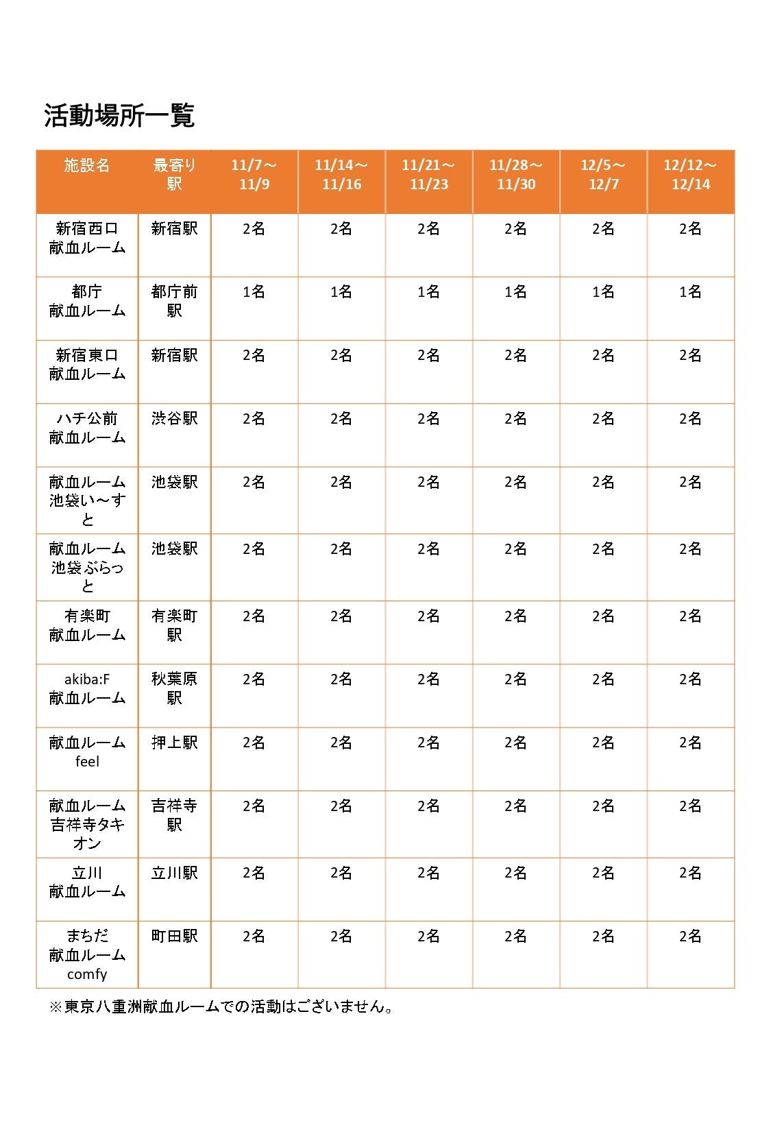 ※東京八重洲献血ルーム、都庁献血ルームでの活動はございません。