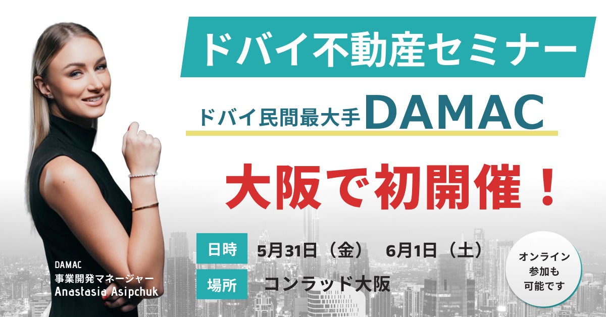 ドバイ民間最大手の DAMACは、ドバイ不動産セミナーを大阪で初開催いたします。貴重な機会なので、ご興味ある方は是非ご参加ください。大阪以外の方も、オンラインで参加いただけます。