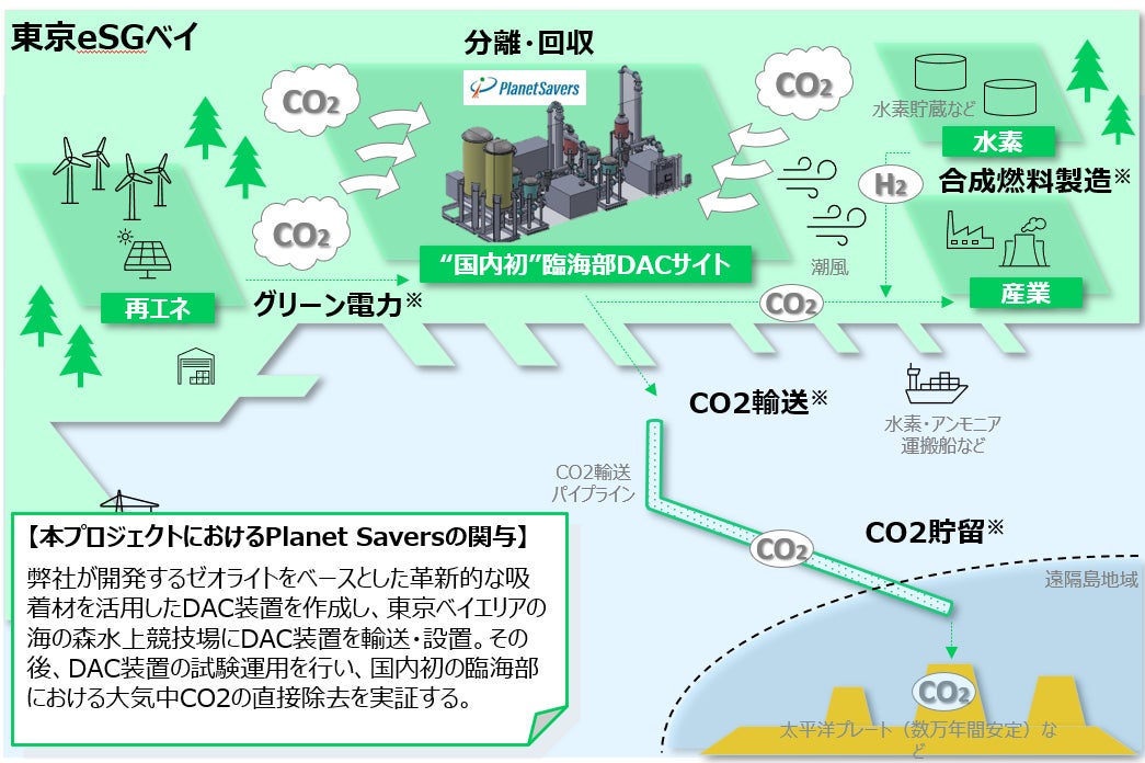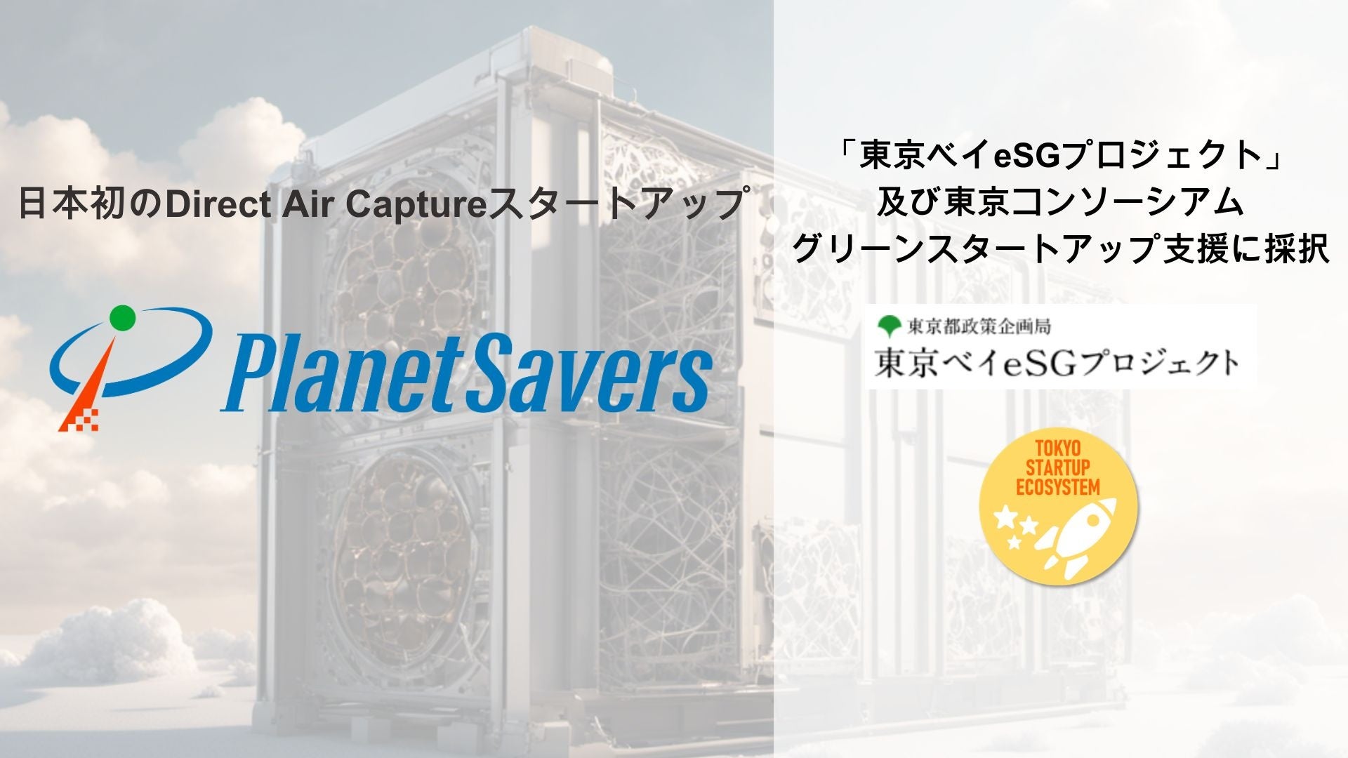 「気候変動を食い止め、次世代に美しい地球を残す」をミッションに掲げる東京大学発、日本初のDirect Air Capture(DAC:大気中CO2直接回収技術)スタートアップ、Planet Savers株式会社(本社:東京都渋谷区、代表取締役:池上京、以下「Planet Savers」)が、東京都の「東京ベイeSGプロジェクト」令和6年度先行プロジェクトにおける環境改善・資源循環分野に採択されました。