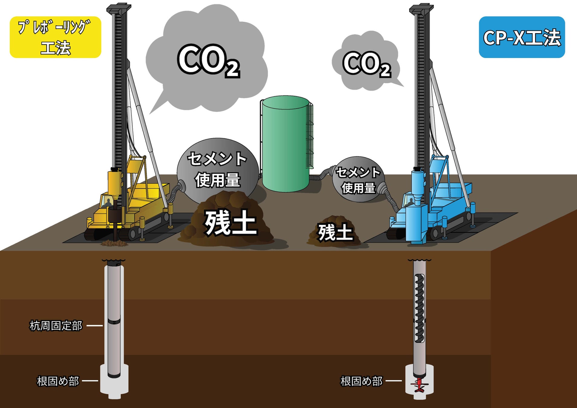 発生残土を大幅に削減できる既製コンクリート杭高支持力中掘り拡大根固め工法「CP-X工法」を開発