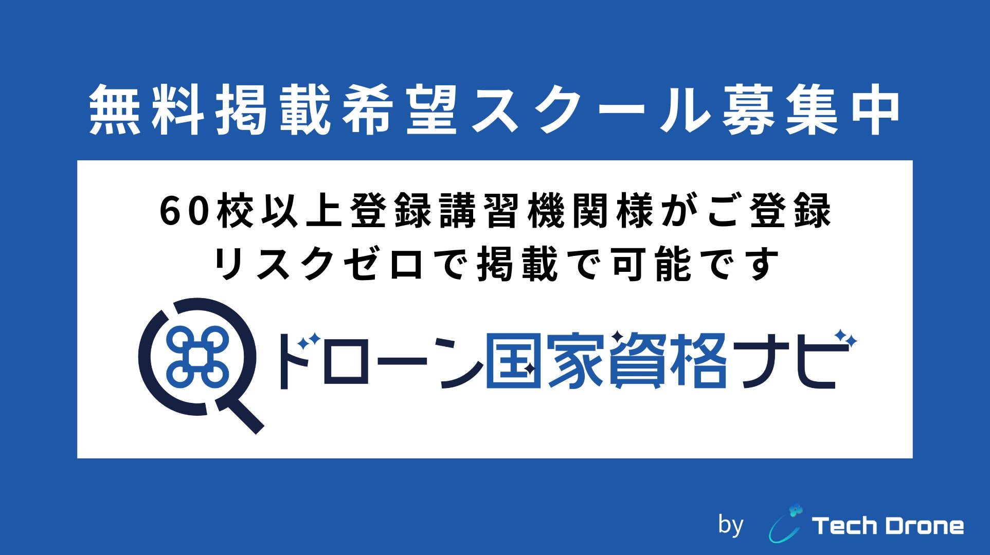 株式会社Tech Droneが運営する「ドローン国家資格ナビ」は、ドローン国家資格のポータルサイトです。現在、60校以上の登録講習機関様にご登録頂いており、現在も掲載申請を募集中です。(掲載料無料)