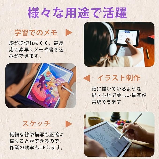 最新素材を採用した表面特殊加工により、ペン先の磨耗を60%低減させるため、タッチペンを長く使用できます。
