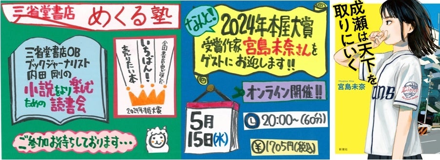 株式会社三省堂書店(本社所在地:〒101-0052 東京都千代田区神田小川町2-5)が主催するオンライン講座「三省堂書店めくる塾」は、5月15日に「本屋大賞発表記念!小説がもっと面白くなる読書会」と題し、2024年本屋大賞受賞作品『成瀬は天下を取りにいく(2023年3月発売 新潮社刊)』を解説する講座を開催いたします。