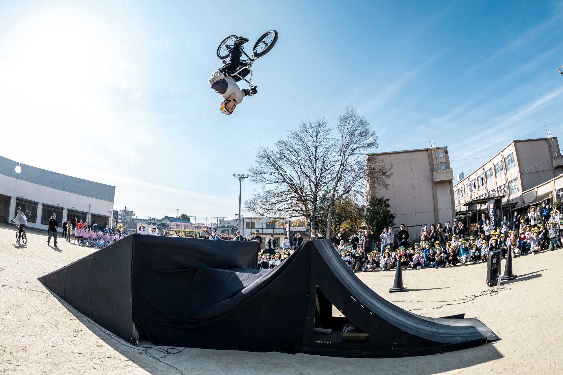BMX デモンストレーションで、大迫力の空中技を間近で体感!ぜひ全校児童のみなさまでお楽しみください!