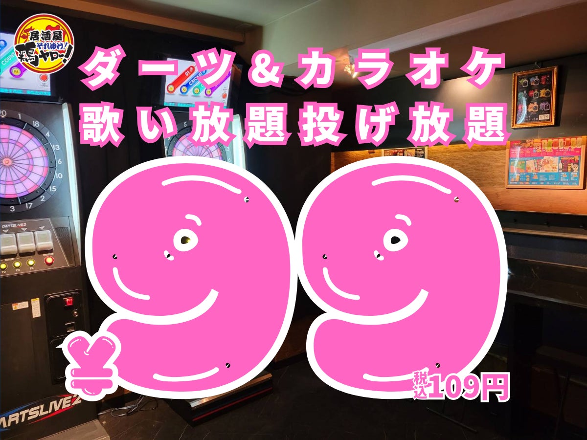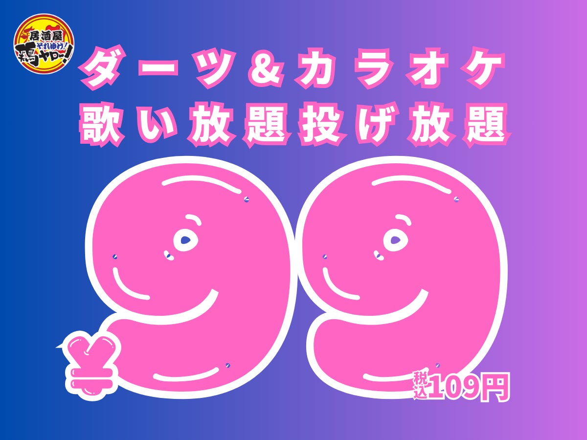 ダーツ投げ放題&カラオケ歌い放題の2つあわせて99円という鬼安価格の新感覚超コスパカラオケ居酒屋が遂に池袋に上陸!50円のレモンサワーを筆頭に、サワーやハイボールが99円という信じられない価格が魅力!