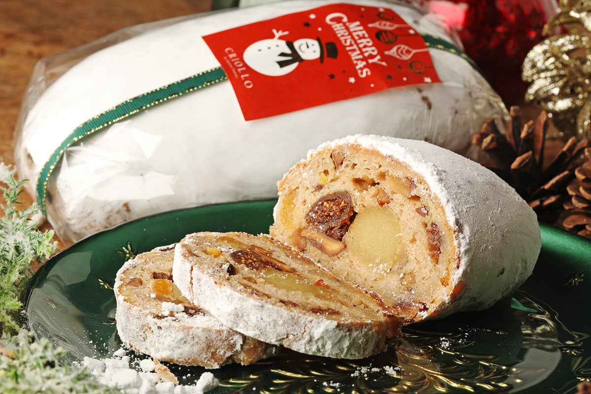 クリスマスをお祝いするための伝統的なお菓子。甘さ控えめで中はしっとり、ドライフルーツやナッツ、マジパンが入った、この時期しか食べられない特別なお菓子です。