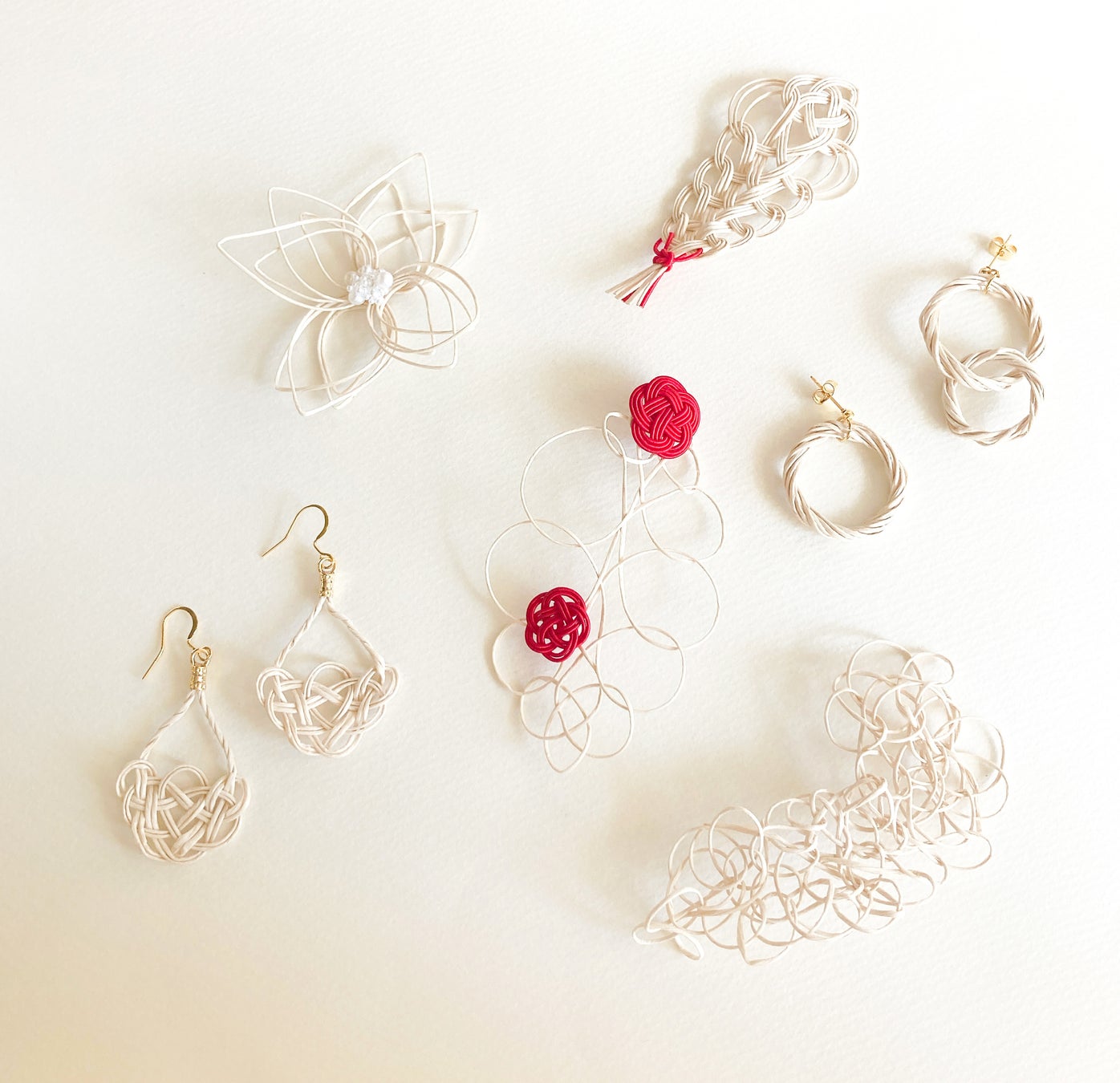 水引は色や形といった多様な“結び“によって、言葉では表しきれない、感謝や寿ぎの気持ちを伝える役割を担っており、縁結びの意味が込められることもあります。その結びの多くは口伝文化で継承され発展してきましたが、近年の慶弔をはじめとする冠婚葬祭の簡素化により全盛期に比べると職人の数も減少傾向にあると言われています。他方で古来からの伝統を大切にしながら、固定観念にとらわれることなく、水引を様々な作品に活用する可能性も見出されています。