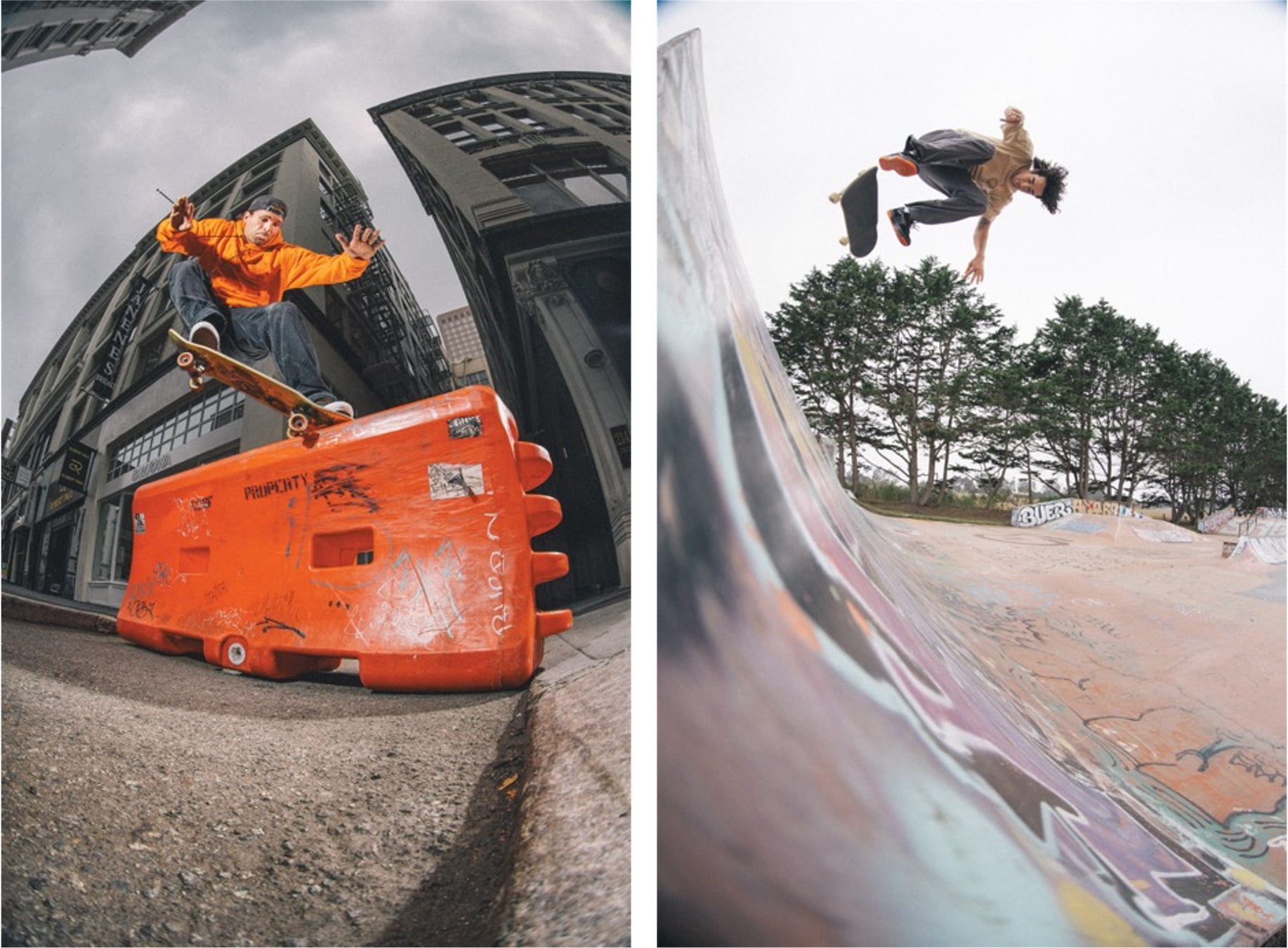 あらゆる層のスケーターに向けたジェンダーレスなアパレルも充実。パーカーや半袖ボタンシャツなどのスケートの定番アイテムは、全て両ブランドのディテールが施され、その他にも肌触りのいい裏地が付いた無地染めのリップストップ製のパッカブルベストやハット、トートバックもラインアップ。※デニムショーツは国内での取り扱いはありません。
