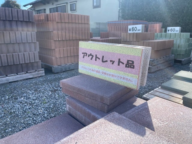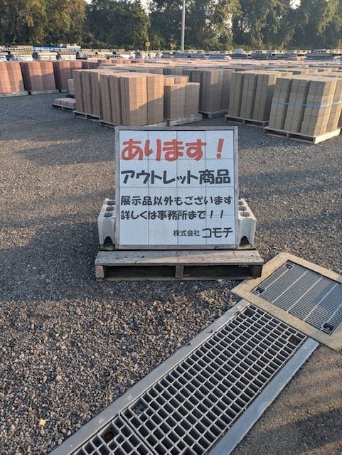 そこを、利用しブロックへ印刷した看板「アウトレット商品」を立て目立つようにしました。