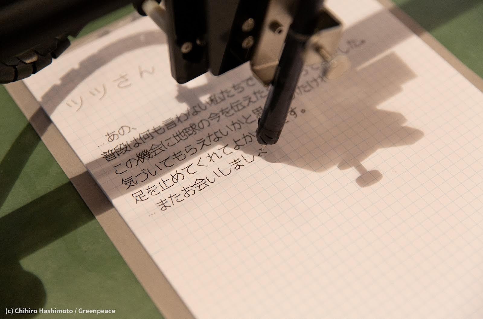 募金したものから、「ペンプロッター」によりその場で執筆・出力するお礼の手紙を受け取ることができます。