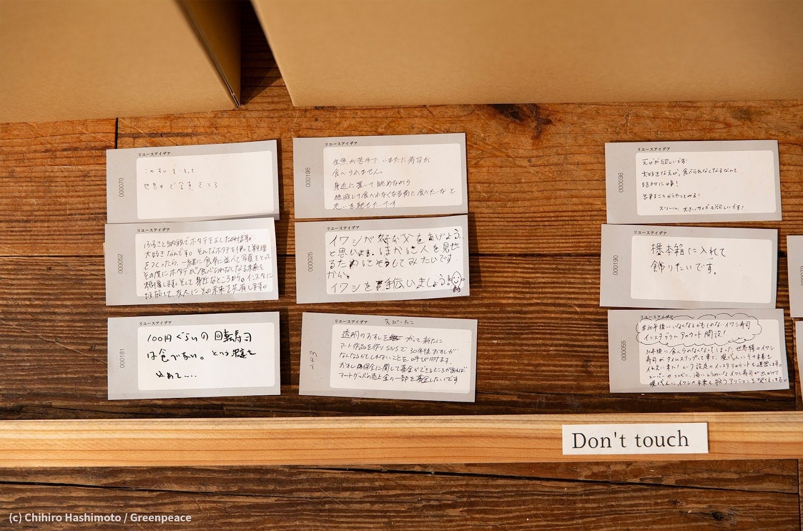 また、持ち帰り希望者にはリユース方法を対象物に付箋で貼り付けて「応募」いただきます。HELP展は時間が経過するごとに、展示作品や会場造作のリユースのアイデアが増えていき、来場者と共創する展示になります。ぜひ、会期中何度もお楽しみください。