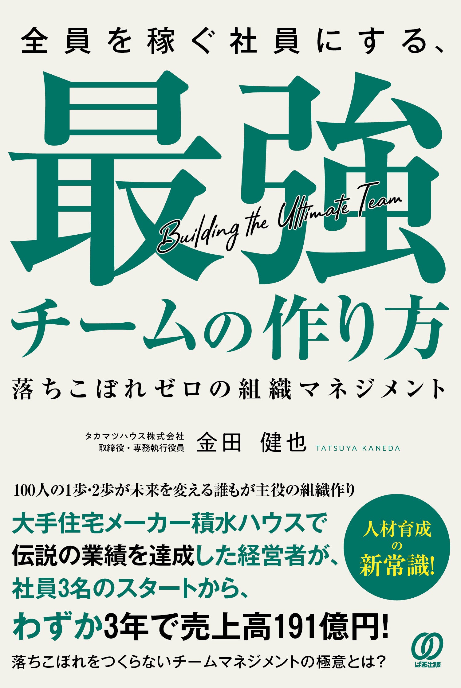 書籍『全員を稼ぐ社員にする、最強チームの作り方』では、わずか3年で売上高191億円を実現したチームマネジメントの秘訣を紹介しています。大手住宅メーカー積水ハウスで数々の伝説の業績を達成してきた経営者、藤原元彦(以下、藤原)はタカマツハウスの代表取締役社長に就任し、落ちこぼれを作らない誰もが主役の組織作りを実現しました。本書はそのマネジメントを、大和ハウス工業出身の取締役専務執行役員・金田健也(以下、金田)が紹介しています。積水ハウスの伝説の経営者のマネジメントについて、ライバル会社の大和ハウス工業出身の金田が紹介するという、これまで類を見ない書籍となっています。