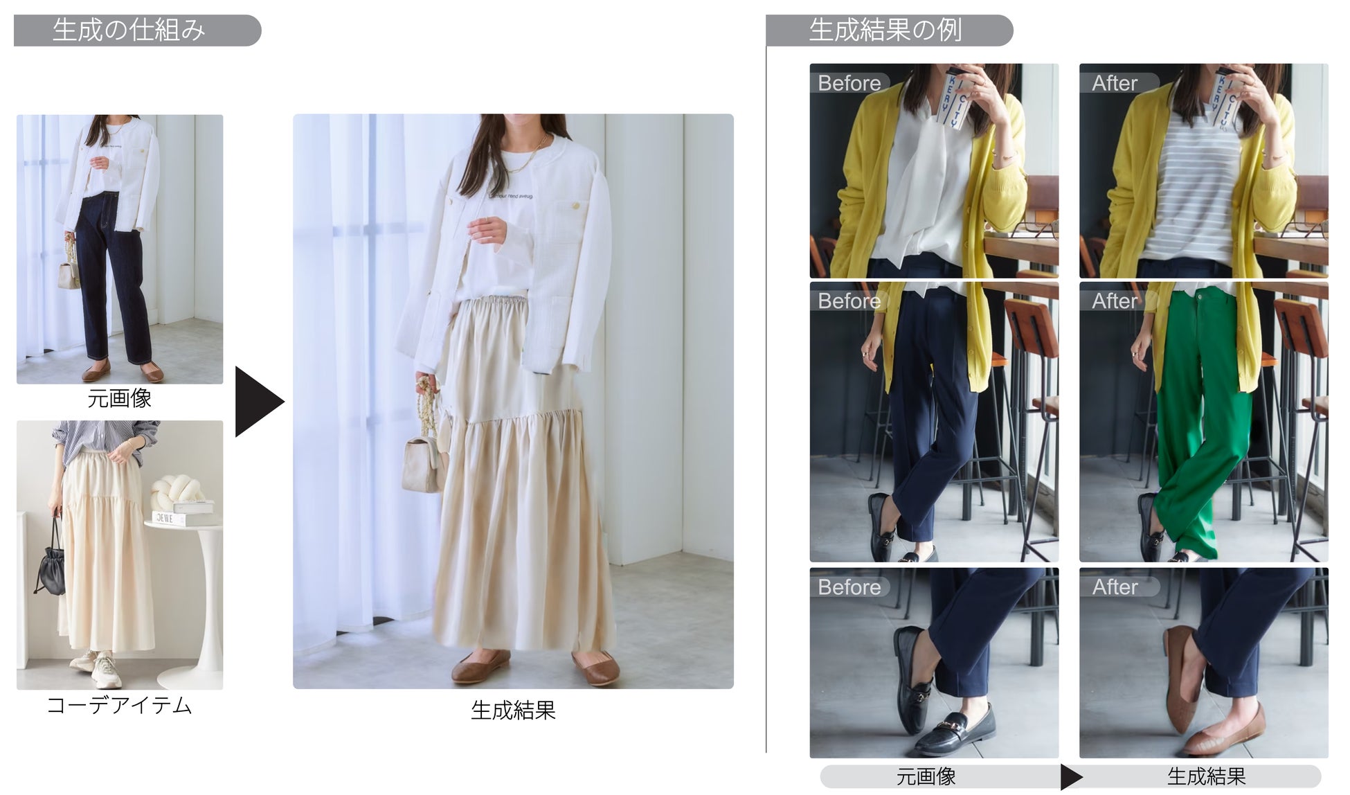 画像生成AIが既存データをもとに衣服の着用パターンを自動生成