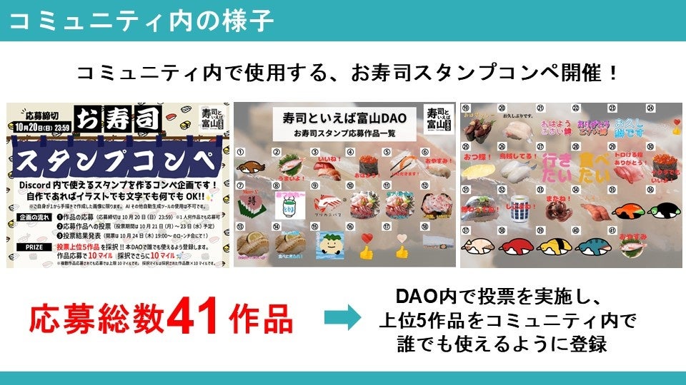 Web3 Times合同会社(本社:東京都中野区、代表社員:末次祥太郎、以下Web3 Times)は、地域課題をデジタルソリューションで解決するDigi-PoC TOYAMA(デジポックとやま)実証実験プロジェクトの一環として、「寿司といえば、富山」ブランディングの取組みの輪を拡げ、関係人口を創出・拡大するため自律分散型オンラインコミュニティ「寿司といえば富山DAO」を富山県と共同で2024年10月に設立しました。