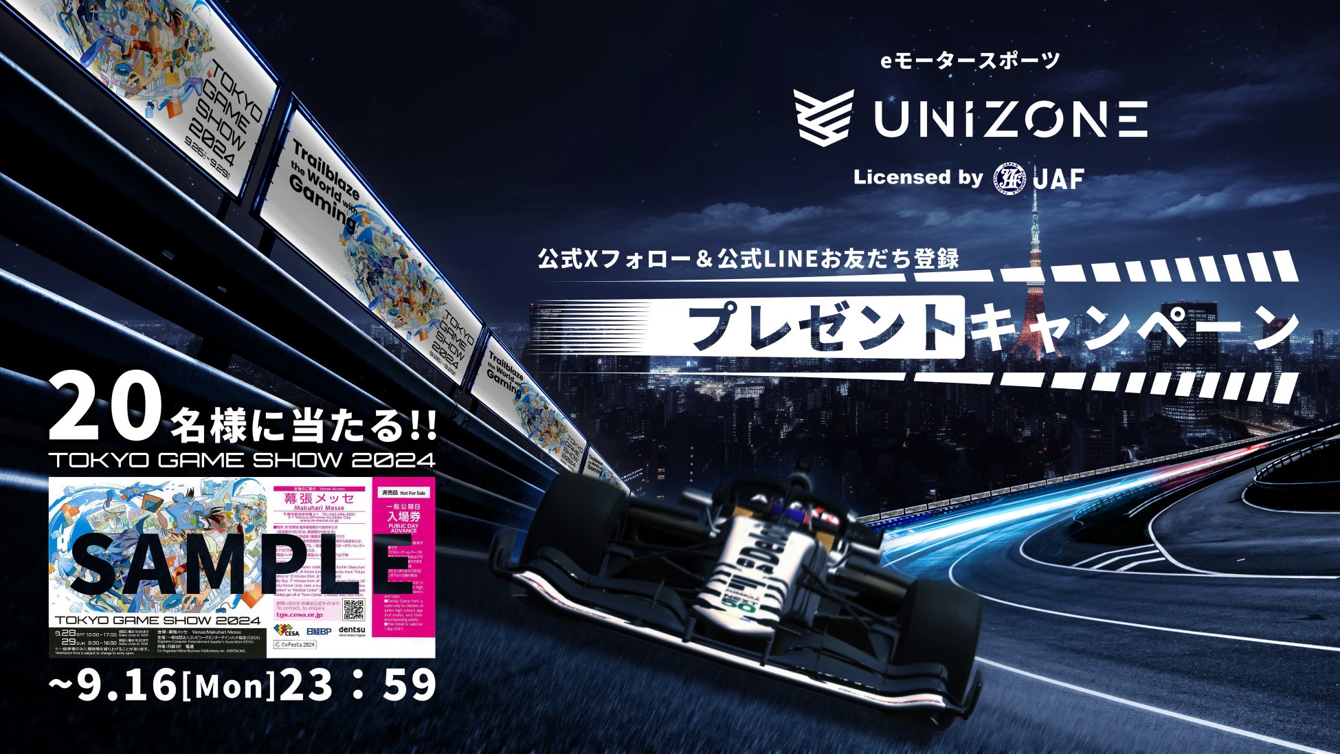 国内で唯一JAF(日本自動車連盟)の公認を受けたeモータースポーツ大会(レーシングゲームを使用したeスポーツ大会)「UNIZONE(ユニゾーン)」を運営する一般社団法人日本eモータースポーツ機構(東京都千代田区、代表理事:出井宏明、以下「JeMO」)は、2024年9月26日(木)から29日(日)に幕張メッセで開催される「Tokyo Game Show 2024」へのUNIZONEブース出展を記念し、公式Xフォロー&公式LINEお友だち登録プレゼントキャンペーンを実施、キャンペーン内容を発表します。