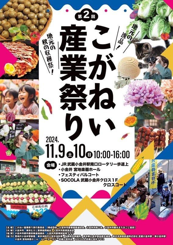 小金井市では11月9日・10日(10:00~16:00)にJR武蔵小金井駅南口ロータリー、小金井 宮地楽器ホール、フェスティバルコート、SOCOLA武蔵小金井クロス1Fクロスコートを会場に「第2回こがねい産業祭り」を開催する。