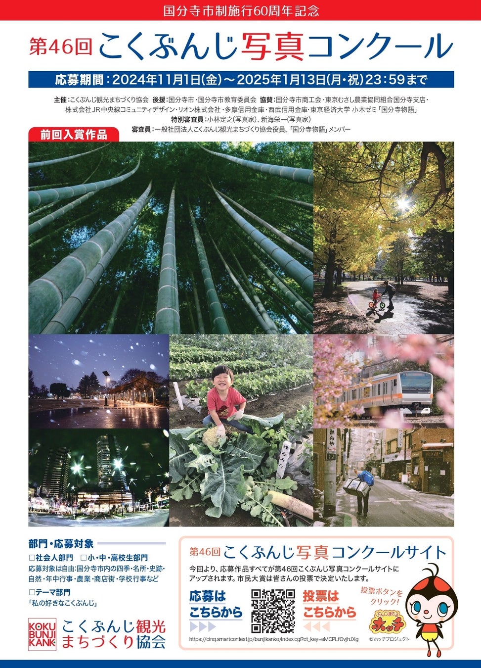 部門は●「社会人部門」と●「小・中・高校生部門」と●「テーマ部門」の3つ。「こくぶんじ観光まちづくり協会長賞」(1名/2万円商品券と副賞)など多彩な賞品が用意されている。また、今年からは市民が選定に関わる「市民大賞」も設けられている。