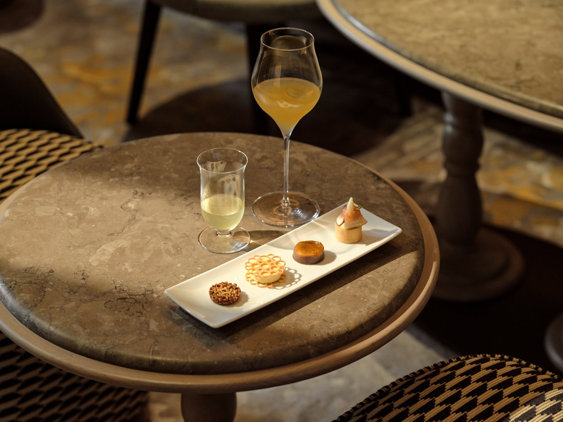 ジャヌ バーの、シグネチャーカクテルなどの監修者であり、日本を代表するミクソロジストのひとり、南雲主于三氏の3つのカクテル、ジャヌ東京オリジナル煎茶の監修者、SABOE 櫻井真也氏の4つのお茶、そしてジャヌ東京ペストリーシェフ 野口ゆきえの4つのスイーツ。ぜひ、「伝統・革新・融合」をテーマにした、3人のスペシャリストによる新たなダイニングエクスペリエンスのひとときを、ジャヌ バーにてお過ごしください。