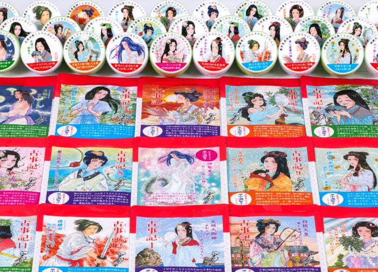 今から1300年以上前に編纂された「古事記」は、日本最古の現存する歴史書です。同時期に完成した「日本書紀」に比べ物語性が高く、様々な失敗に思い悩みながら、努力し困難を乗り越える神々の姿が生き生きと描かれています。『伊勢美人マスク 古事記シリーズ』は、古事記やギリシャ神話など様々な歴史を題材に数多くの作品を手掛けられた里中満智子氏に作画をお願いしました。古事記の神々に、伊勢美人本舗オリジナルの伊勢美人の精を加えた15種類のデザインを準備いたしました。