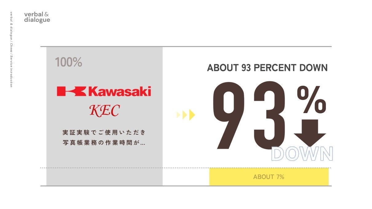 このような背景のもと、ある大企業の現場で3ヵ月間、「AI工事写真アプリCheez」の実証導入をしたところ、台帳を作成する時間は93%も削減されました。空いた時間で他の業務が出来るため、全体の生産性向上にも繋がり、人手不足に対し大きな効果と影響をもたらすことが可能です。