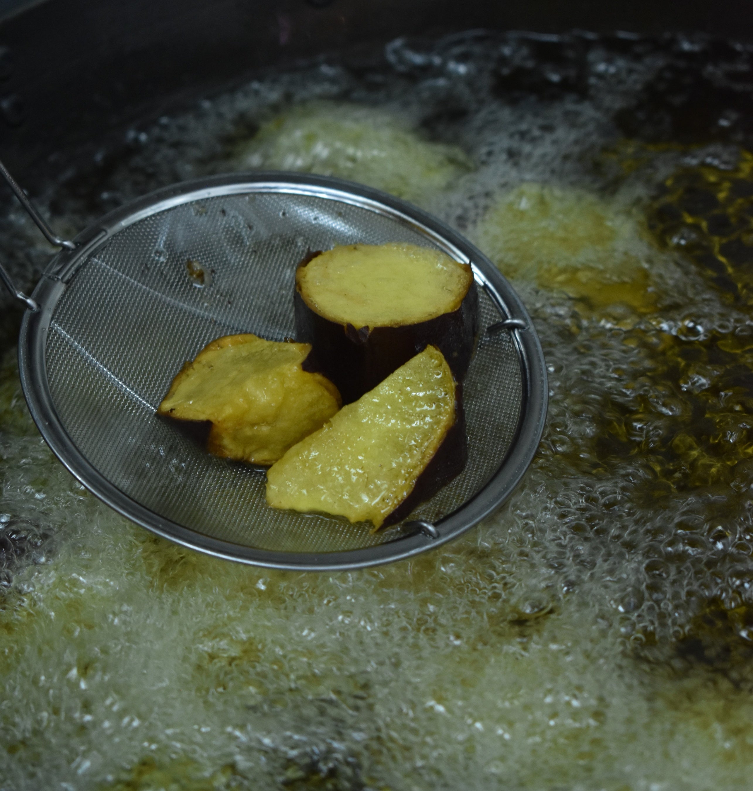 さらにタレは1000gに対してわずか225gしか作ることのできない『芋蜜』をたっぷり混ぜた、大学芋のタレを最後にかけ究極の大学芋が完成します。