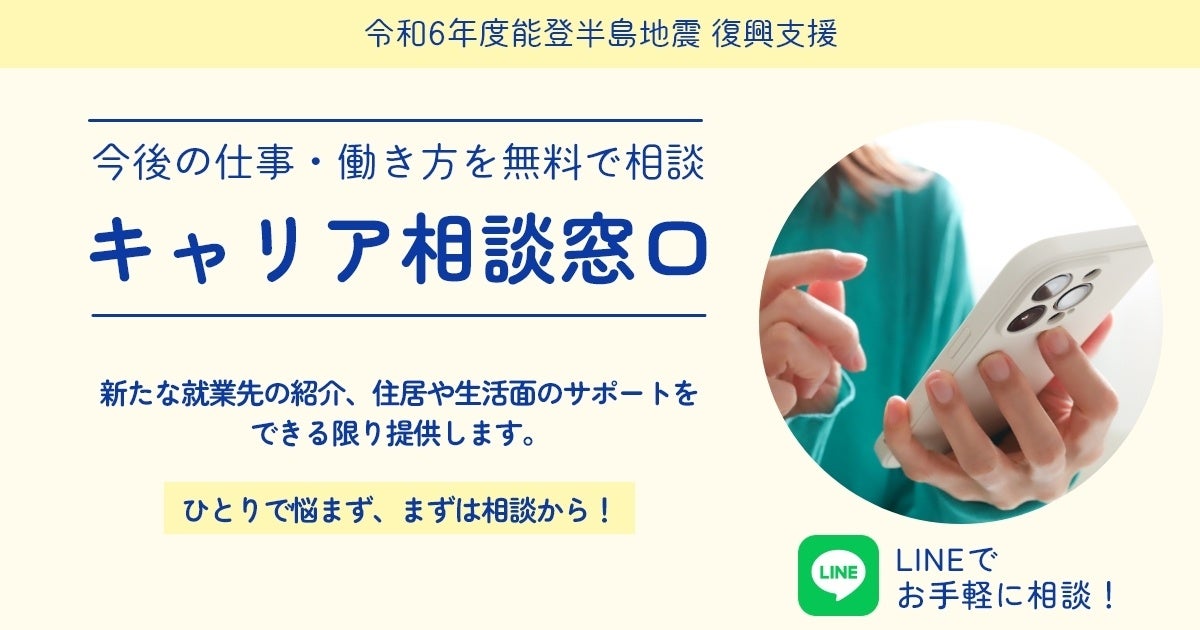 【令和6年能登半島地震復興支援】被災された方を対象としたキャリア相談窓口の設置に関するお知らせ