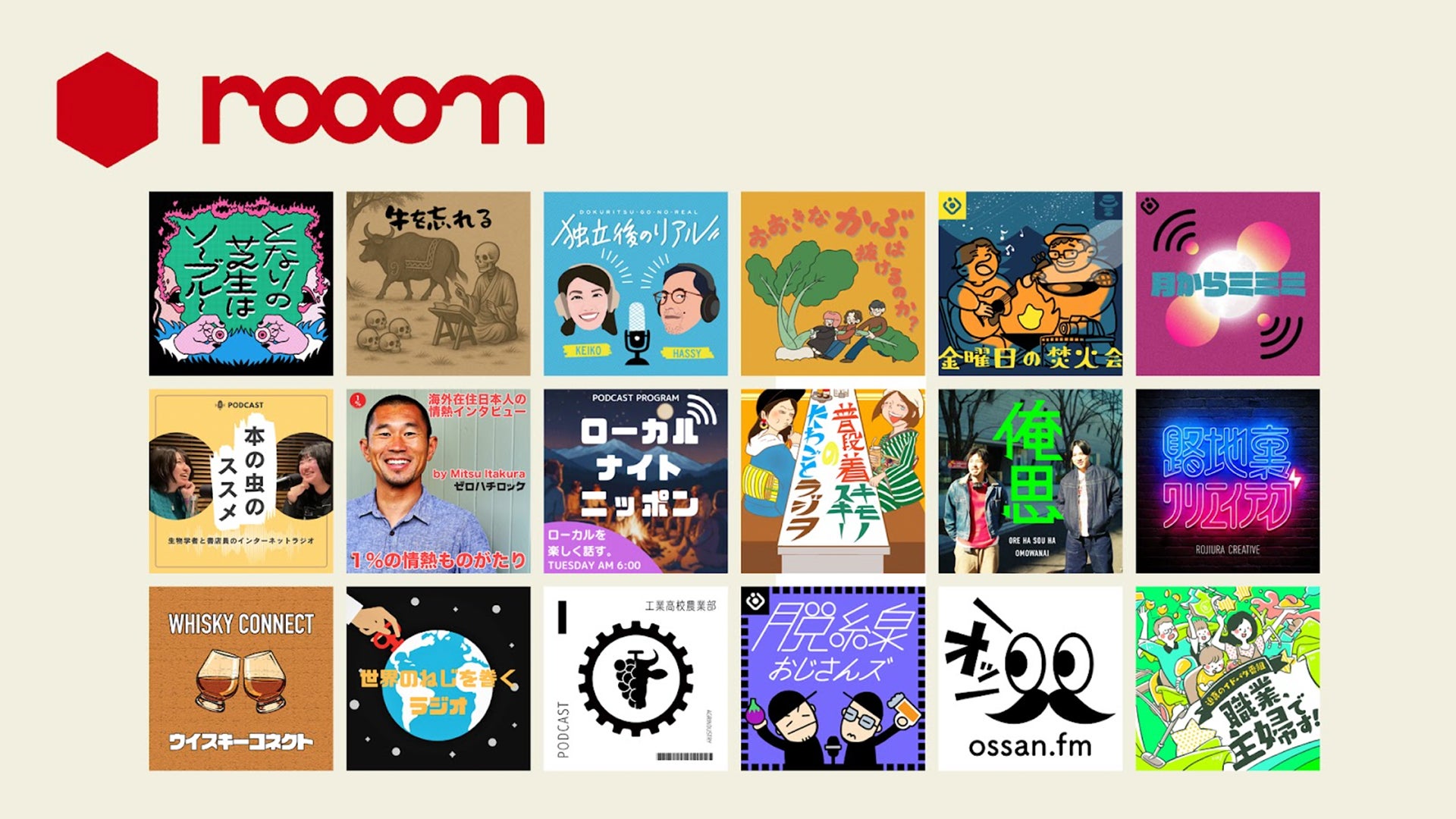この反響を受け、本日より第2弾として18組のポッドキャスターが新たにrooomを開設しました(一部、近日公開予定含む)。音声表現の多様化が進む中で、rooomは番組の個性をそのままに活かせる"文化の拠点"として、より多くのクリエイターに活用いただいています。