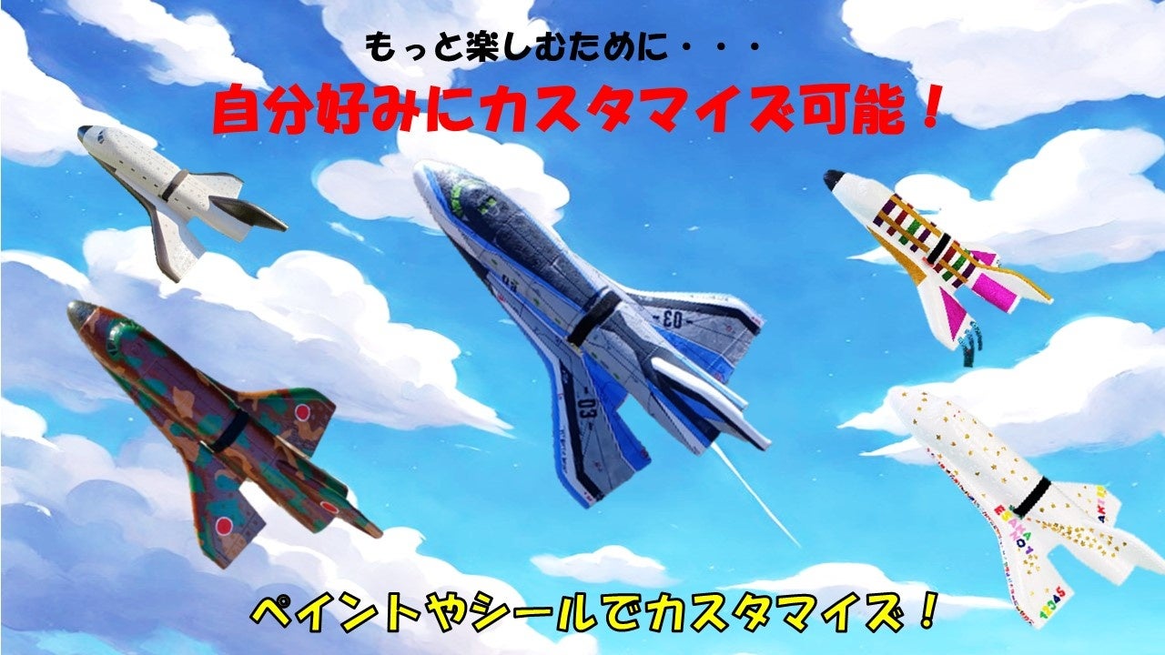 商品は白色の発泡ポリプロピレン製であるため、船体にシールを貼ったりペイントすることができます。自分だけのオリジナルな1機を作る楽しさもあります。