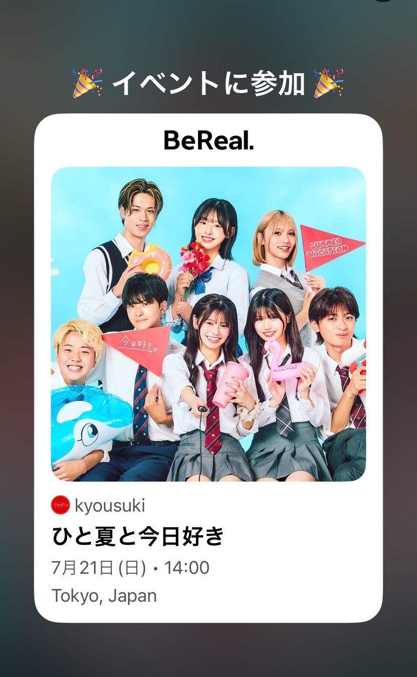 『今日好き』RealEvent : https://bere.al/events/we3LFz-QnZKLEODZf3Ar6
