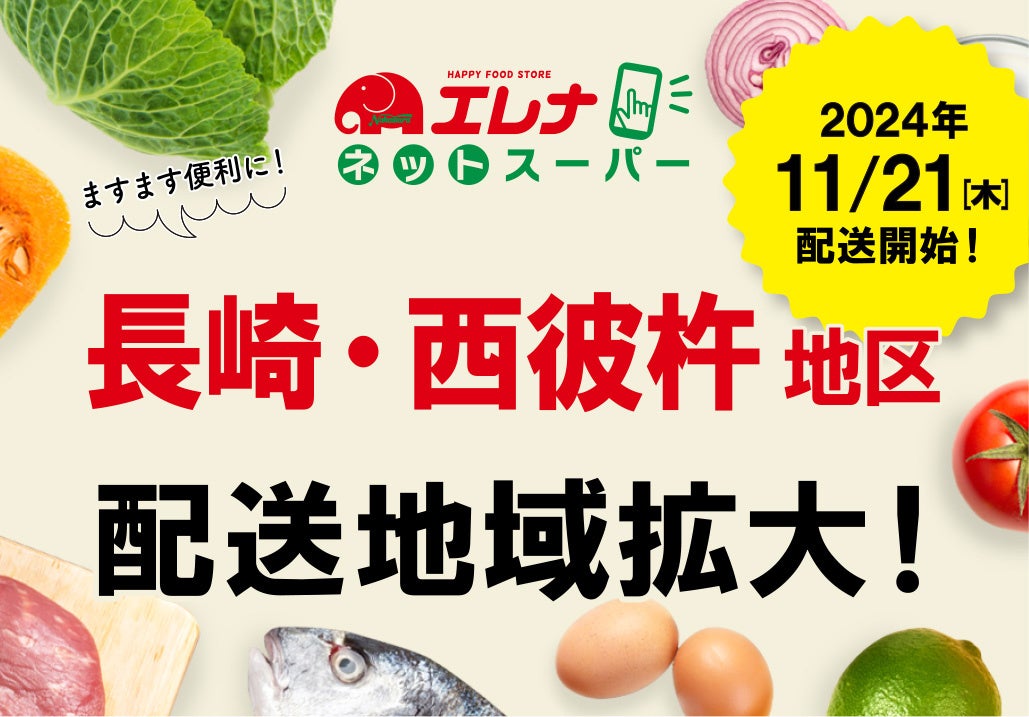 11/18 長崎・西彼杵地区エリア拡大!「エレナネットスーパー」配送エリア拡大のお知らせ